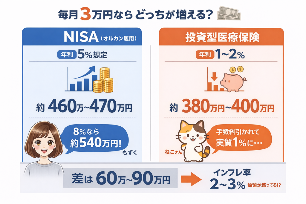 毎月3万円ならNISAとどっちが増える?