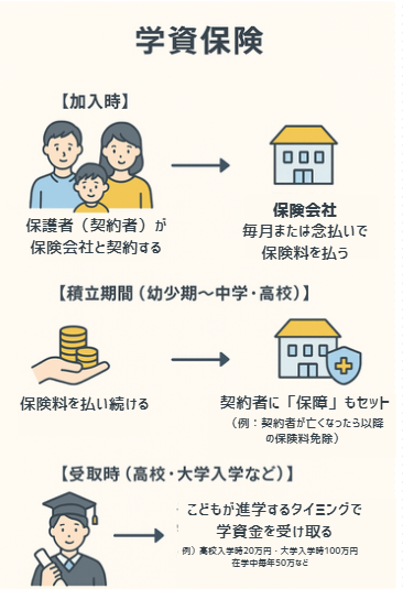 - 契約者(親)が亡くなった場合は、その後の保険料支払いが免除され、満期金は予定通りもらえる