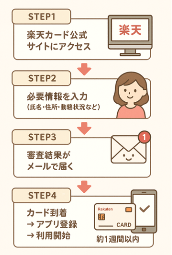 楽天カードの申し込みは、ネットから約5分程度で完了できます。